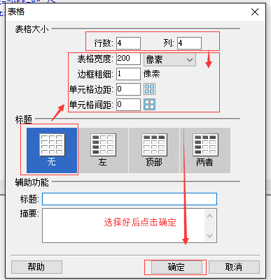 填写选择好表格需求信息后点击确定