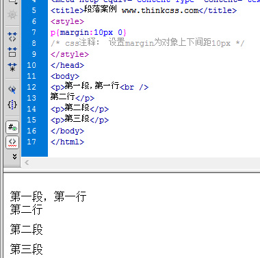 CSS段落间距调整之margin实现上下段落之间间距距离样式设置,我们知道margin是设置上下左右对象与对象之间距离设置,这里段落也可以使用此css样式实现间距。这里HTML8依然以设置两组margin样式进行对比观察。